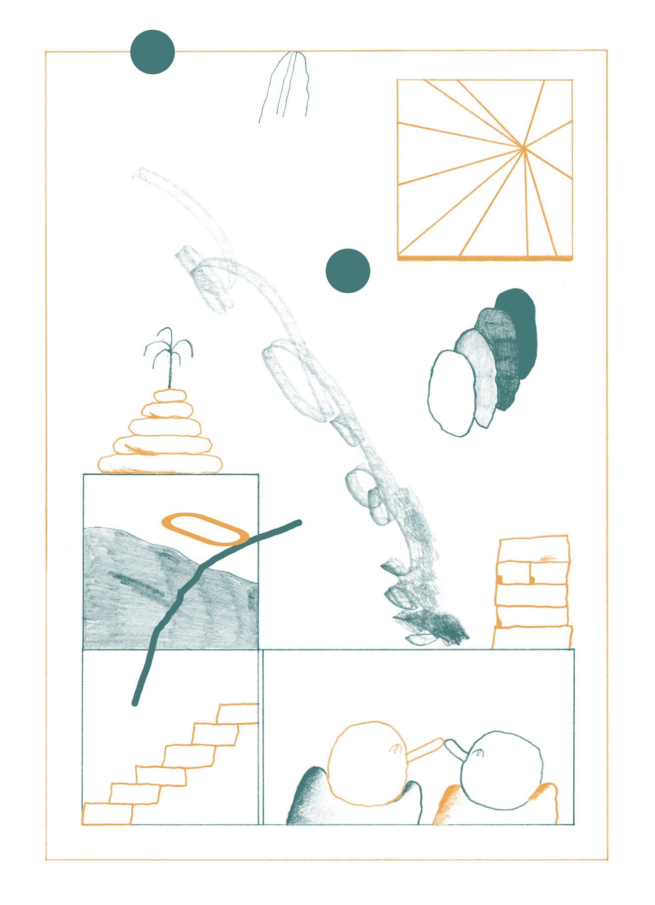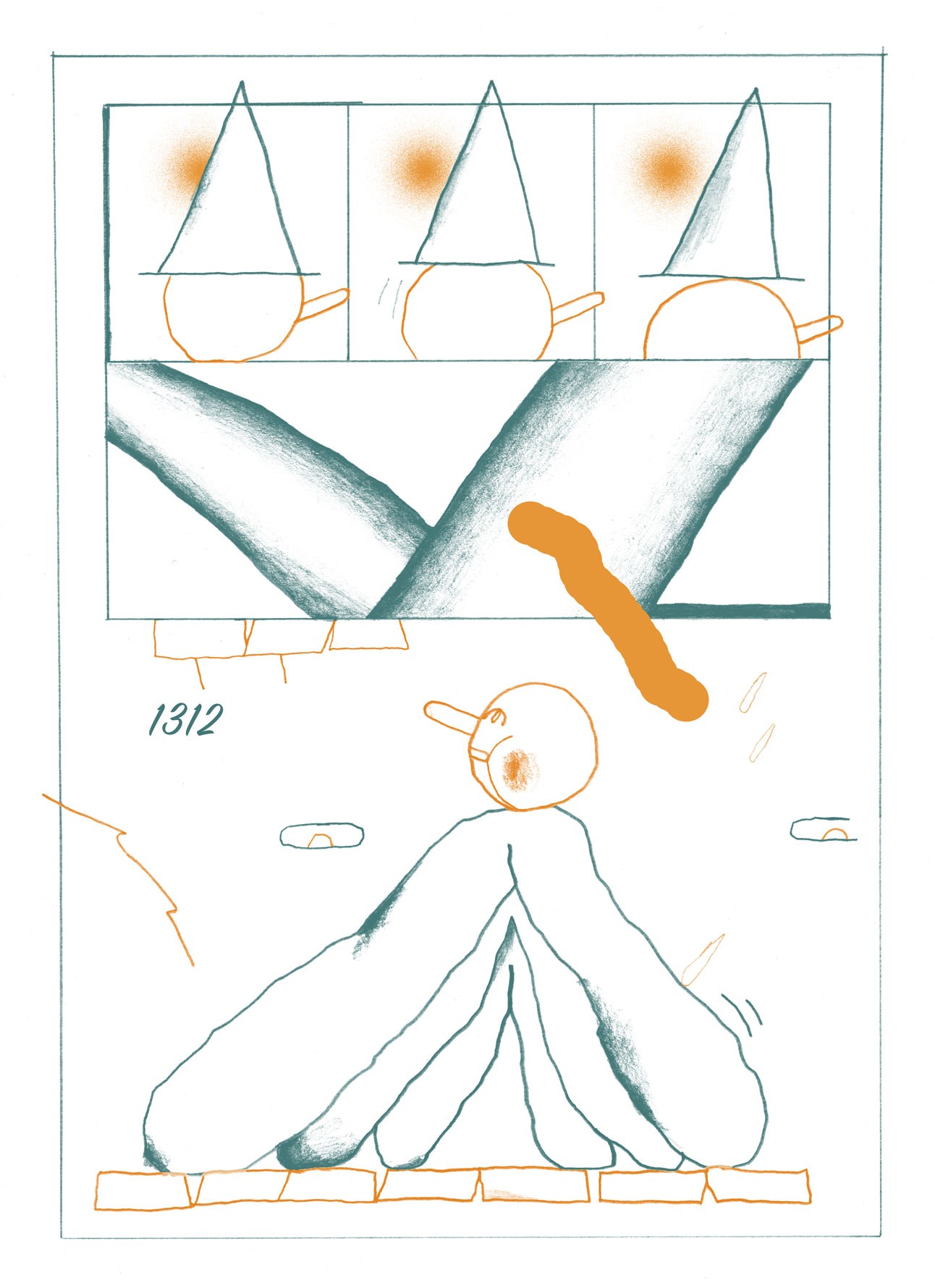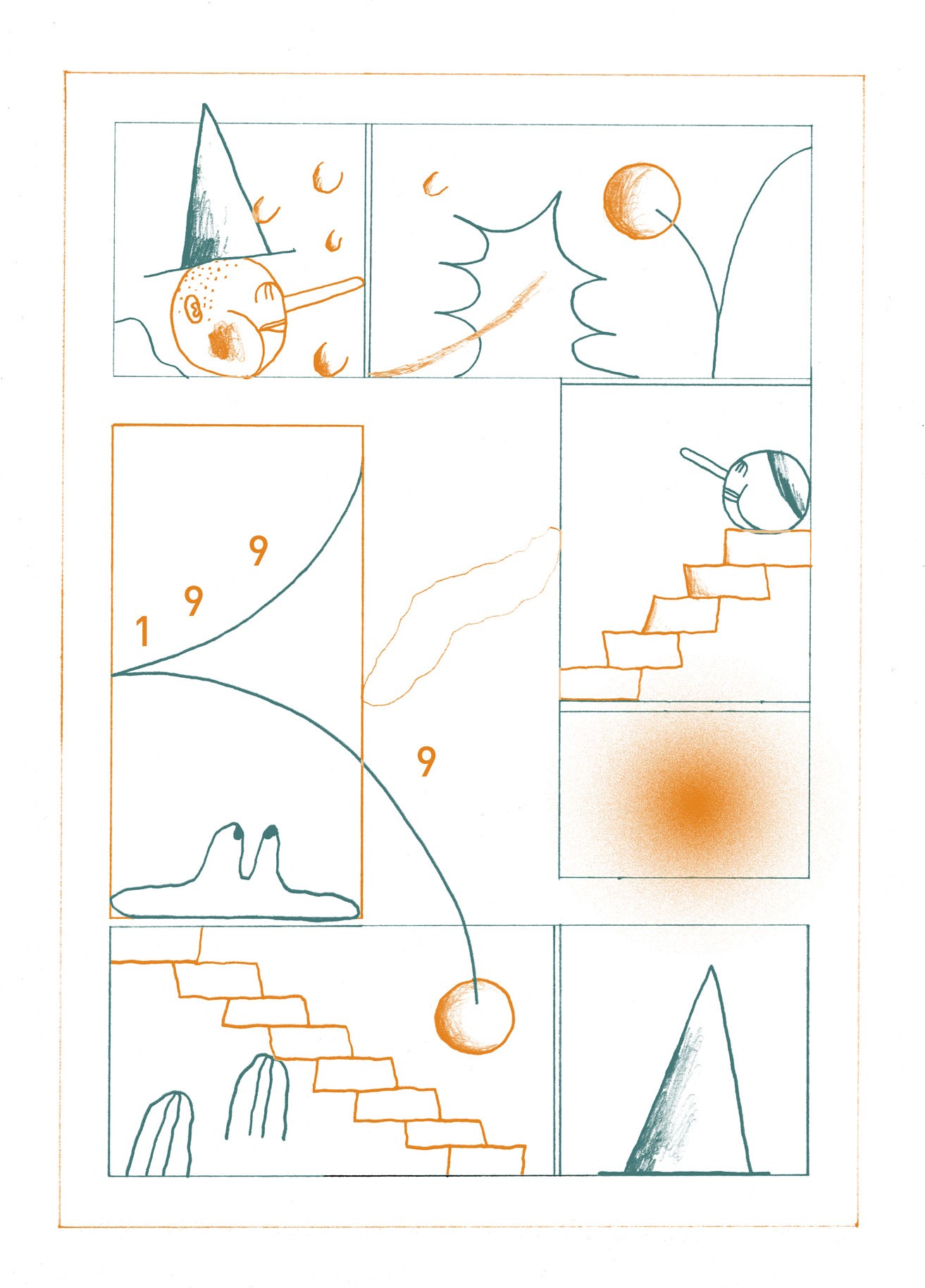 "Let's get out of town", 4-seitiges Comic für das Comic Buch "Preventative Measures" von Kiki & Bouba Gallery (US), 2022