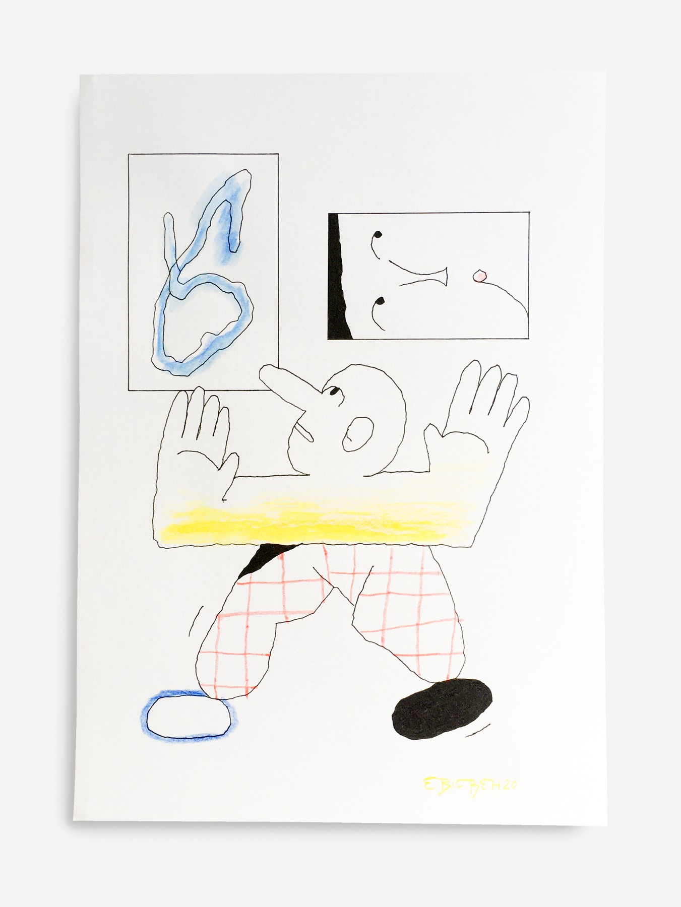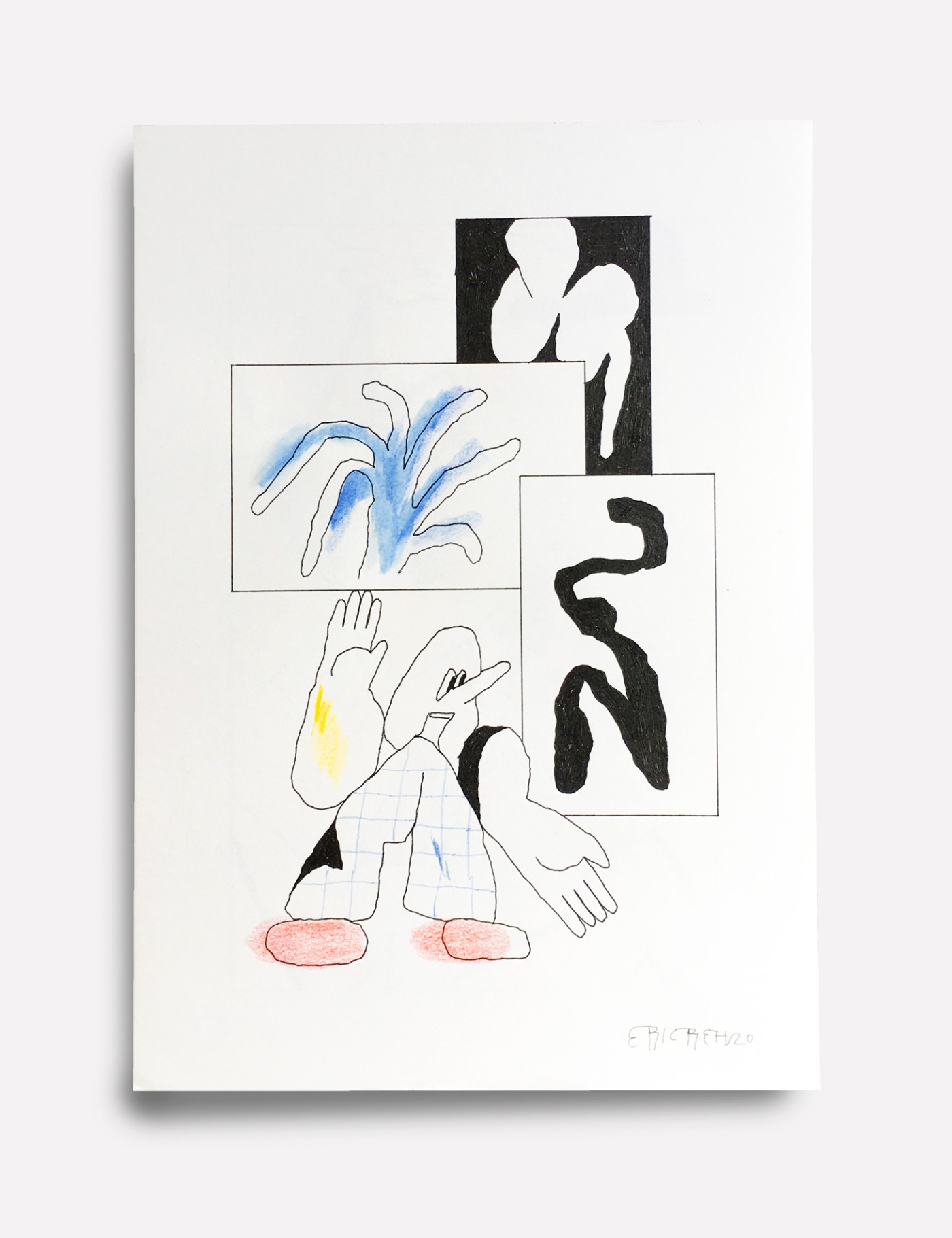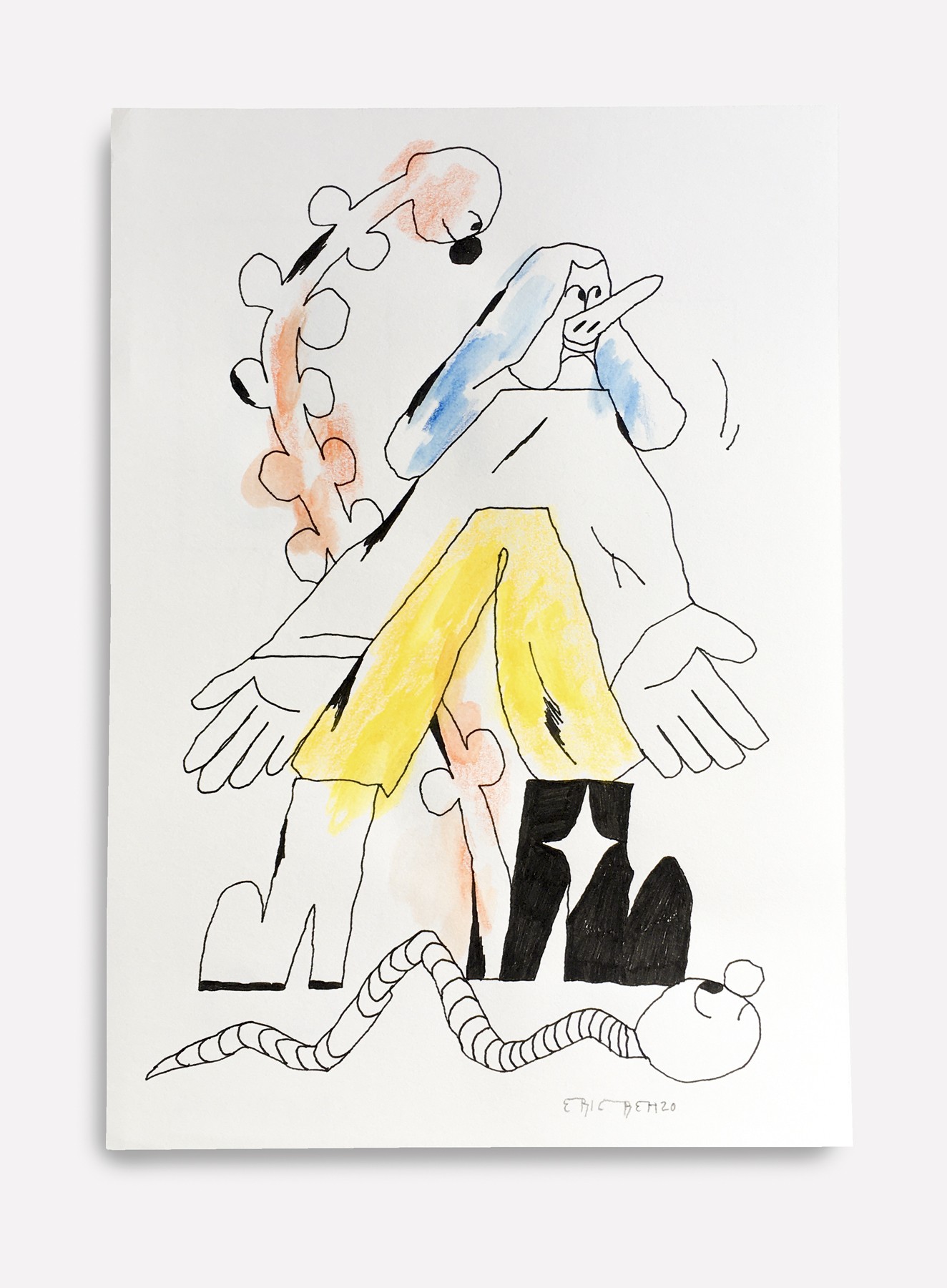 "Jonglage", Tusche und Buntstifte auf A4 Papier, 2018/ 2021